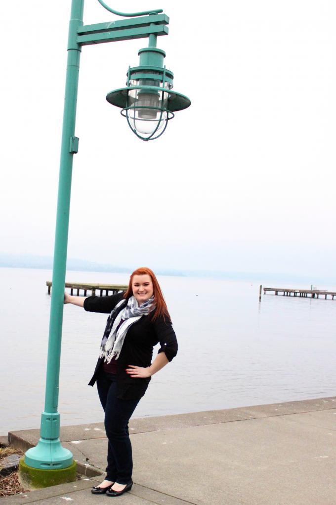 I really wanted to make the necklace the centerpiece of this outfit, so I went with basic pieces and neutral colors – a deep purple crewneck top, dark skinny jeans, a black sweater and scarf. Lately I really love layering my longer necklaces with a scarf. It’s a fun way to wear both during the winter and add a little something extra to the necklaces you don’t necessarily want to layer with other necklaces. I love wearing the Tiffany heart alone, but adding the scarf is a fun way to add another dimension to your outfit without taking away from the beauty of the piece.